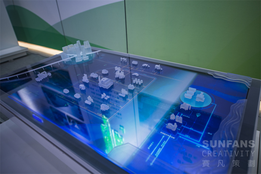 展廳整體風(fēng)格以簡潔明快為主,為增強(qiáng)展廳的互動感與內(nèi)容的易讀性,在多媒體互動方面注重創(chuàng)新,利用科技手段自然流暢地融合展示空間,打造靈動親切的人性化展陳氛圍。