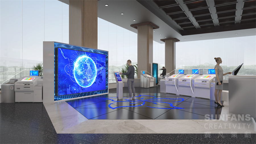 運用五大核心科技嵌入全業(yè)務流程,覆蓋全渠道。設計圍繞大灣區(qū)、大灣區(qū)金融科技兩大元素,結合軟硬件設施與科技金融服務兩大模塊,展現(xiàn)國有銀行服務國家發(fā)展大戰(zhàn)略的品牌形象,推進了網(wǎng)點業(yè)務差異化建設。