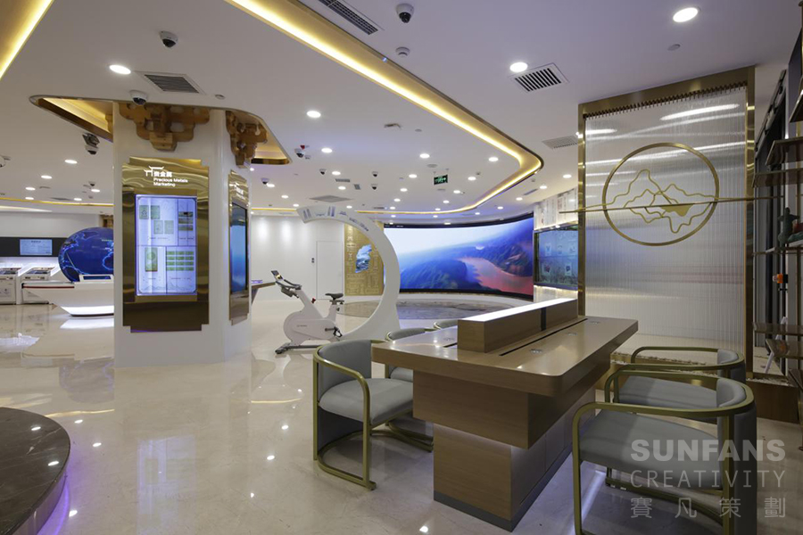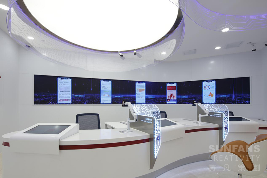 賽凡設(shè)計團隊根據(jù)5G概念為契機,從空間布局,多媒體技術(shù)融合應(yīng)用及地域文化特色展示等方面進行整體方案設(shè)計,突破傳統(tǒng)網(wǎng)點形象,打造富有科技感的5G+文旅主題場景的銀行網(wǎng)點,塑造全新的銀行品牌形象,擴大了品牌影響力。