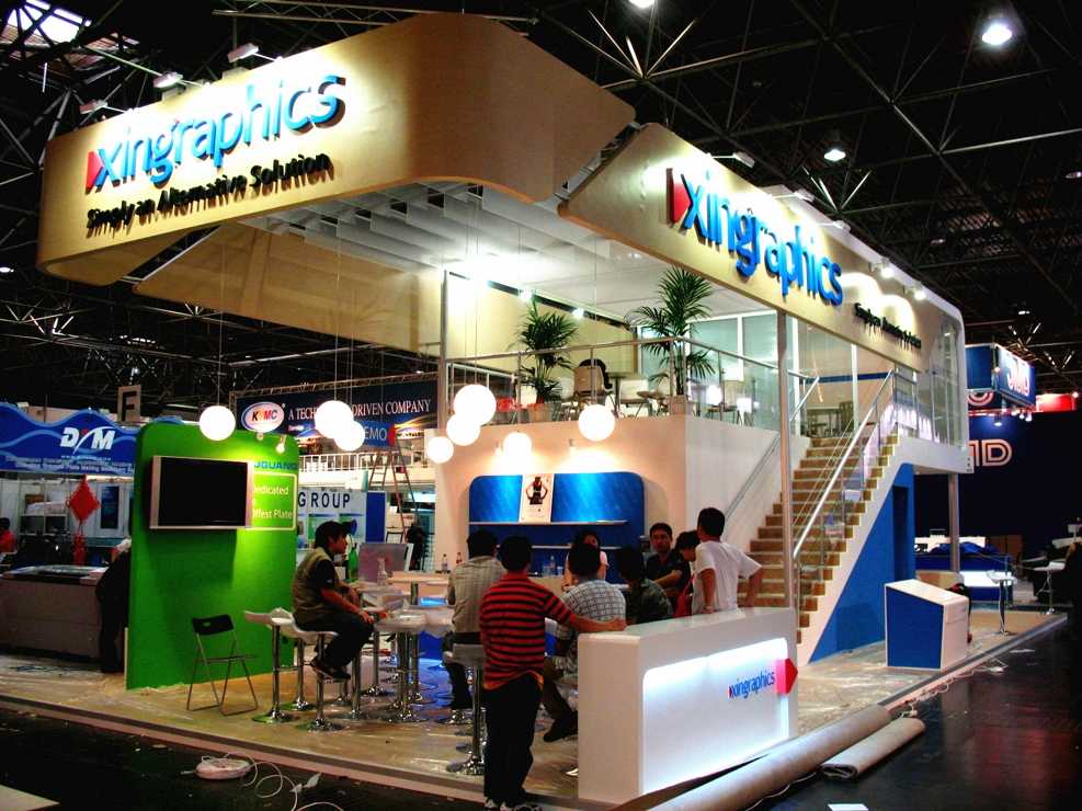 整個展臺的設計非常國際化,讓我國的企業(yè)在眾多國際化公司中突出自身特點。本案的設計將展示區(qū)域設計為雙層結構,在展區(qū)的一側裝置簡易咨詢服務臺,簡約的設計讓人眼前一亮。