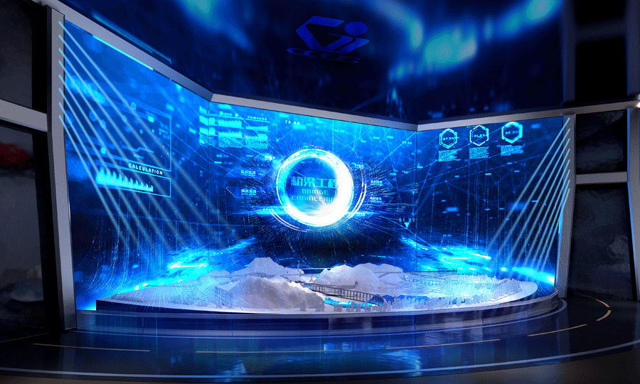 在展廳的深處,不僅講述著這段波瀾壯闊的歷史與文化,更將集團(tuán)的科技實(shí)力作為展示的重點(diǎn)。為此,設(shè)計(jì)團(tuán)隊(duì)精心打造了一個(gè)多媒體全景數(shù)字沙盤(pán),利用3D全息技術(shù)和大數(shù)據(jù)可視化手段,生動(dòng)展現(xiàn)了貴州公路集團(tuán)在橋梁建設(shè)、隧道開(kāi)挖、道路養(yǎng)護(hù)等方面的獨(dú)特技術(shù)實(shí)力。這些高科技的應(yīng)用,不僅讓參觀者能夠直觀感受到集團(tuán)的技術(shù)創(chuàng)新成果,更深刻理解了科技在推動(dòng)公路事業(yè)發(fā)展中的重要作用。