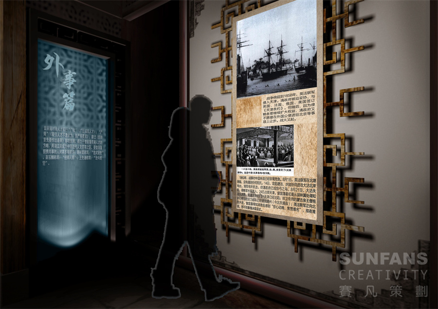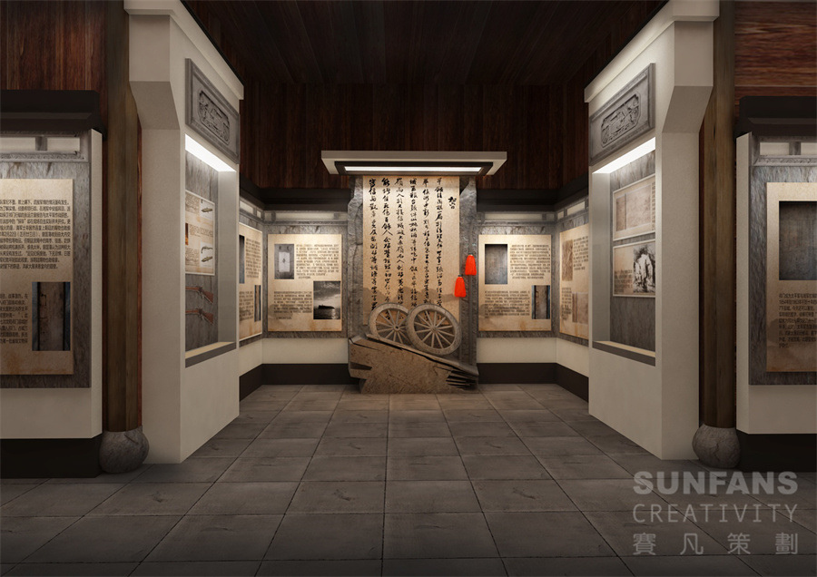 整個展區(qū)在形式上突出了外景內(nèi)看的獨特效果,在表現(xiàn)內(nèi)容的同時尤為關(guān)注展覽空間的藝術(shù)性及文化性,將主題內(nèi)容輔以當(dāng)?shù)靥厣囆g(shù)表現(xiàn)手法,將地域文化有機(jī)的融入設(shè)計中。詳盡的圖文介紹配以浮雕等藝術(shù)化的表現(xiàn)形式,提升了整個空間的藝術(shù)品位及文化價值。