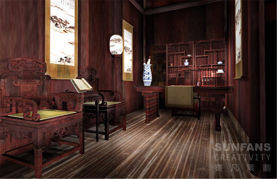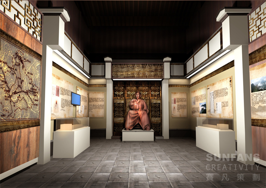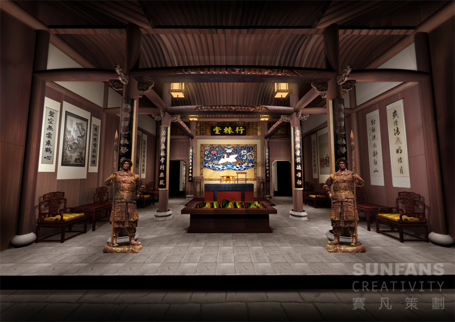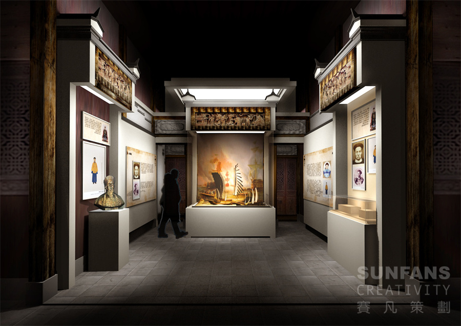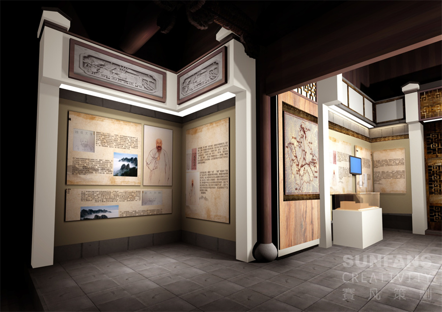 1.形式:突出祁門的地域特色,設(shè)計在洪家大屋結(jié)構(gòu)復(fù)原的基礎(chǔ)上,重新搭建展陳單元,在屋堂內(nèi)重現(xiàn)祁門經(jīng)典代表性建筑構(gòu)造,形成空間上的交錯。走入陳列館相對有限的空間內(nèi),就如同走入曾國藩所處時期的祁門一般,營造內(nèi)外一體,空間穿越的非凡感受。