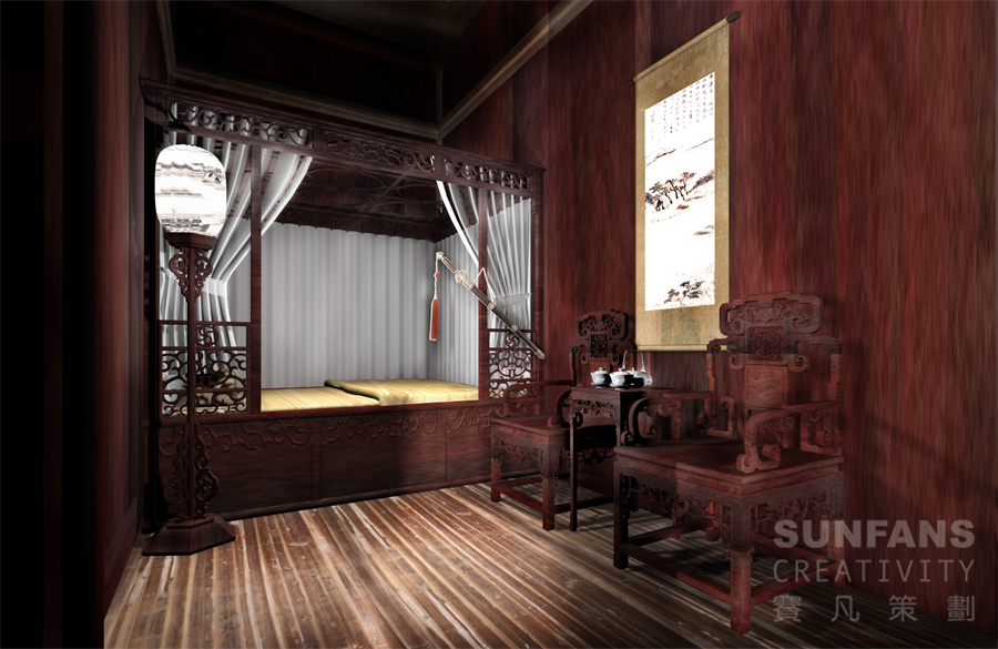 臥室布局再現(xiàn)了歷史真實場景,“寶劍懸床頭”表現(xiàn)了當(dāng)時戰(zhàn)局的緊迫性以及曾國藩不成功便成仁的堅定決心。