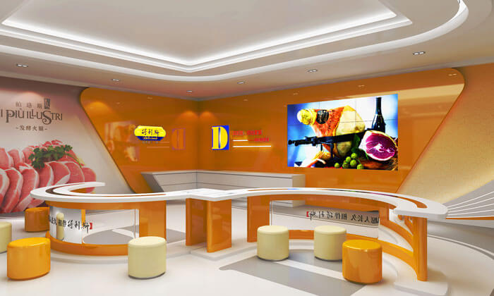 展廳設(shè)計中結(jié)合展示+品嘗雙重功能,在參觀結(jié)尾設(shè)置品嘗區(qū),激發(fā)觀眾購買興趣。簡約溫馨的得利斯廚房,讓觀眾停下腳步,回眸得利斯的成就,矚目發(fā)展的宏圖,品嘗凝聚鄉(xiāng)愁的得利斯美食。