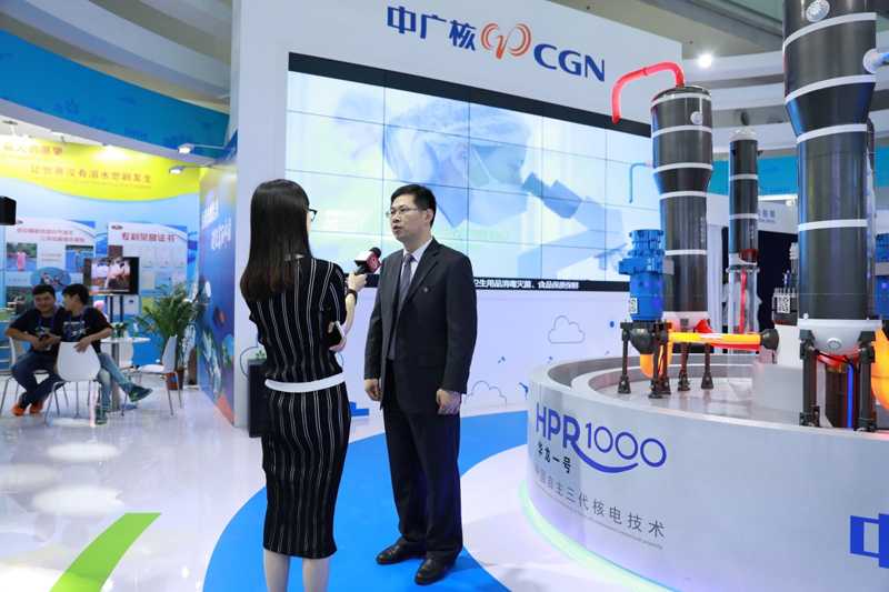 中廣核工作人員在展位接受主流媒體采訪