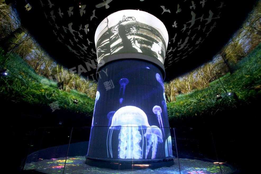 多媒體球幕展示系統(tǒng)的主要設(shè)備是球幕顯示設(shè)備、魚眼鏡頭、中控設(shè)備、互動系統(tǒng),推薦在展會、展廳、城市規(guī)劃館、科技館、博物館等。