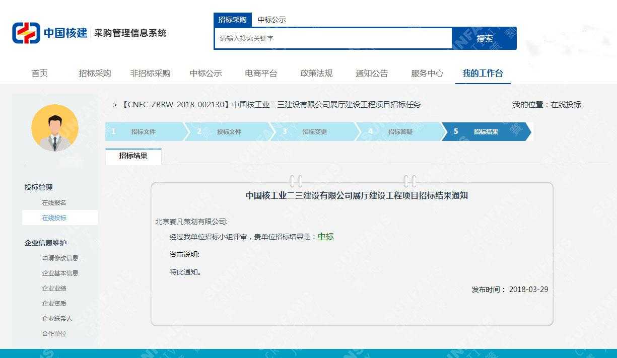 恭喜賽凡中標(biāo)中國核工業(yè)二三建設(shè)有限公司展廳項目,中國核工業(yè)二三建設(shè)有限公司(簡稱“中核二三公司”),中國核工業(yè)建設(shè)股份有限公司重要成員單位,創(chuàng)立于1958年,是中國規(guī)模大型的核工程綜合安裝企業(yè),是國際上一家連續(xù)30余年不間斷從事核電站核島安裝的大型企業(yè),是經(jīng)國家住房與城鄉(xiāng)建設(shè)部核定的施工總承包一級企業(yè),擁有聯(lián)合國國際原子能機(jī)構(gòu)(IAEA)授權(quán)的“核電建設(shè)國際培訓(xùn)中心”,中國核工業(yè)建設(shè)股份有限公司和中廣核工程有限公司為共同出資人。