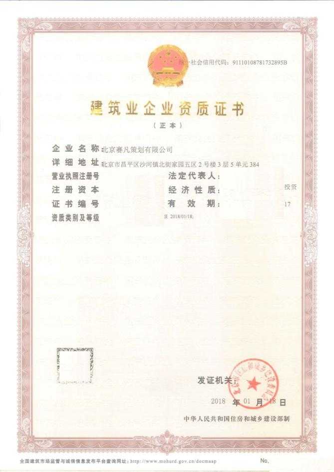 賽凡獲得建筑裝修裝飾工程專業(yè)承包二級資質(zhì)