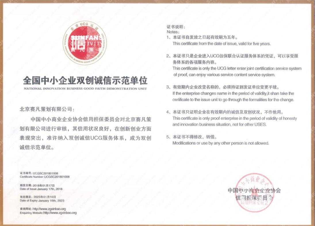 賽凡獲得全國中小企業(yè)雙創(chuàng)誠信示范單位