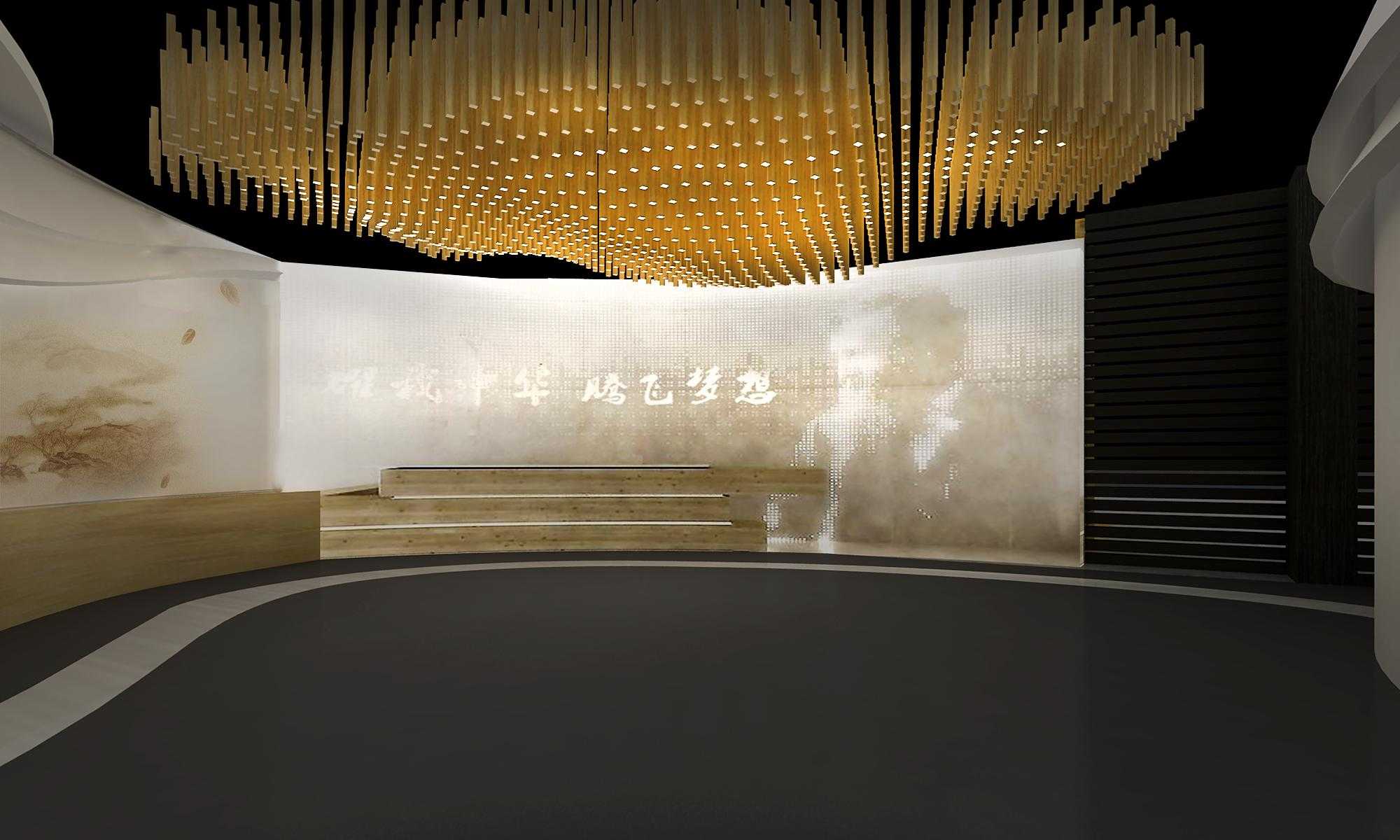 賽凡提取海派文化精髓、配以百年中華文化字形流體矩陣式光明頂,照射著參觀者的鑄夢之旅。設計構思上汲取“?!钡牡赜蛱厣?,打造立體多維藝術空間,整個展館將創(chuàng)業(yè)、奮斗、激情、企業(yè)愿景等情感展示。