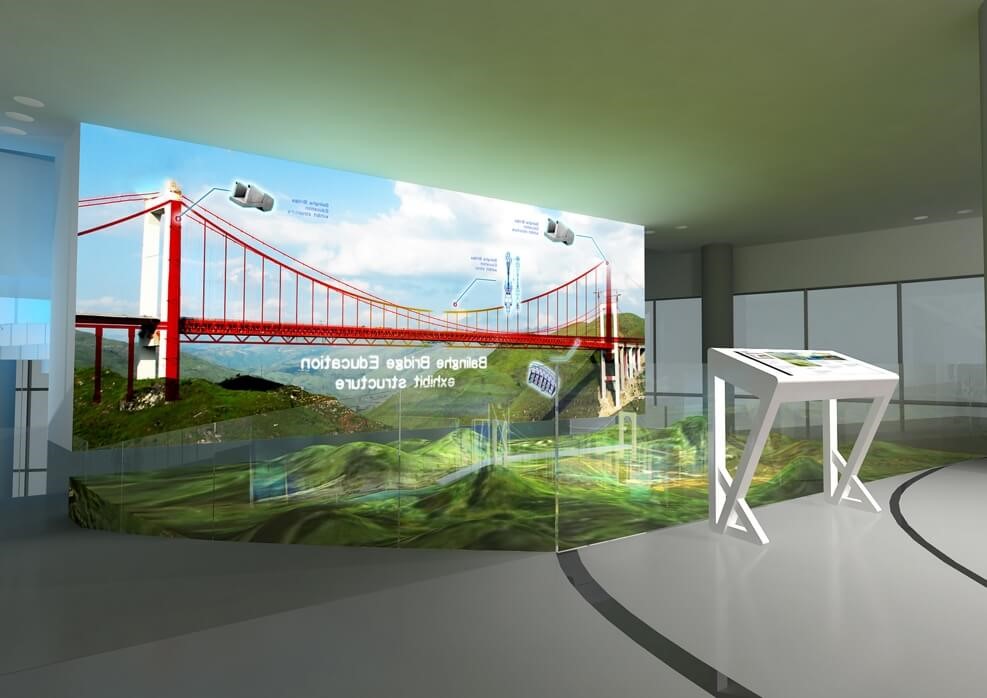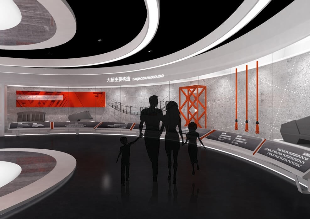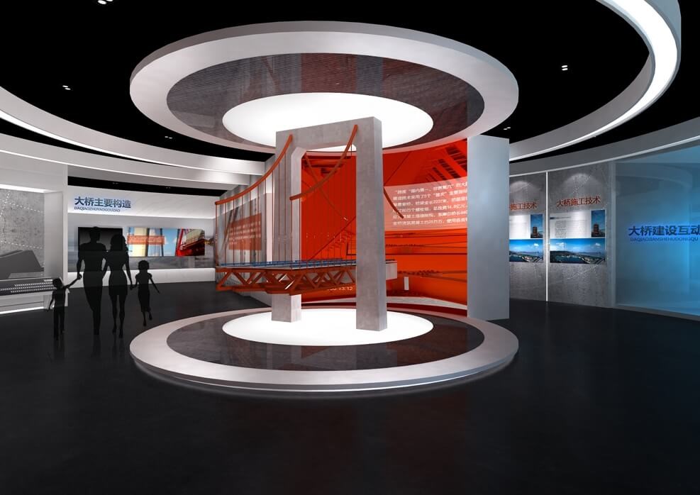 通過多媒體聲光電等多種表現(xiàn)手法,展示大橋設(shè)計(jì)施工管理的整個(gè)過程。