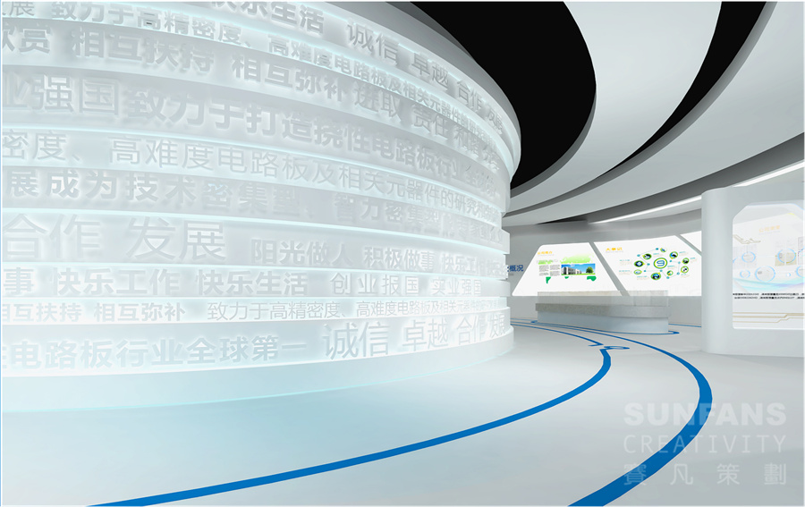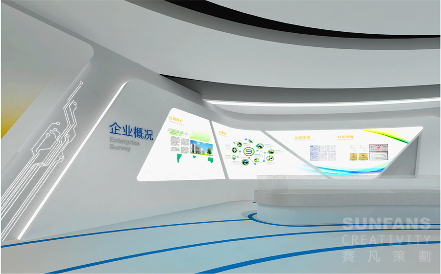 企業(yè)展廳是企業(yè)文化建設(shè)的重要載體,其核心功能是展覽、宣傳、教育,是企業(yè)文化建設(shè)的重要場(chǎng)所。賽凡策劃總結(jié)多年企業(yè)展廳設(shè)計(jì)經(jīng)驗(yàn),認(rèn)為企業(yè)展廳設(shè)計(jì)應(yīng)結(jié)合企業(yè)特質(zhì),將企業(yè)品牌形象和理念的設(shè)計(jì)元素融入展廳的每一寸空間內(nèi),通過合理規(guī)劃空間布局,將企業(yè)概況、發(fā)展演變史、領(lǐng)導(dǎo)關(guān)懷、業(yè)務(wù)產(chǎn)品、重大項(xiàng)目、目標(biāo)愿景等內(nèi)容差異化展示,營(yíng)造豐富、趣味、參與性強(qiáng)的展陳空間,達(dá)到良好的宣傳展示效果。