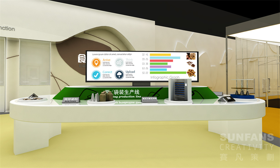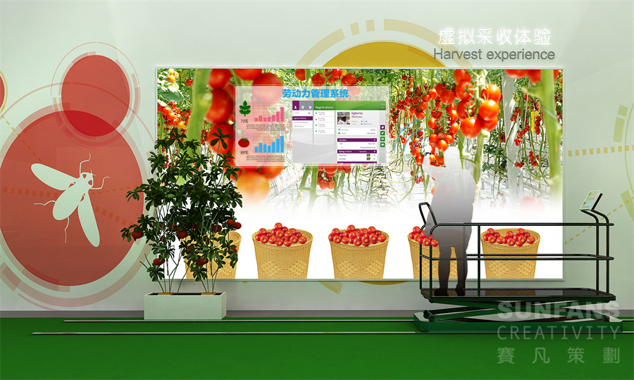 展館以工廠化農(nóng)業(yè)全產(chǎn)業(yè)鏈科技體驗(yàn)為主,我們將展示區(qū)劃分為四大分區(qū):果菜、葉菜、花卉和食用菌,按照農(nóng)業(yè)全產(chǎn)業(yè)鏈“種子——餐桌”的游覽線索,向參觀者奉上了一場胃口大開的“美食之旅”。