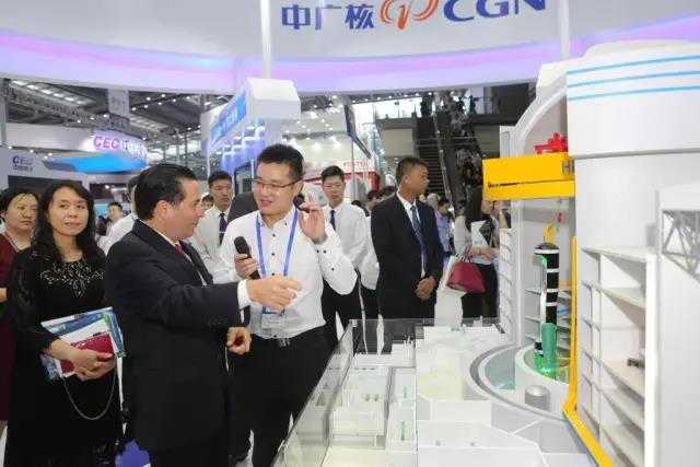 墨西哥大使館駐廣州總領(lǐng)事參觀中廣核展臺(tái),某英語(yǔ)八級(jí)男神正和總領(lǐng)事談笑風(fēng)生中。