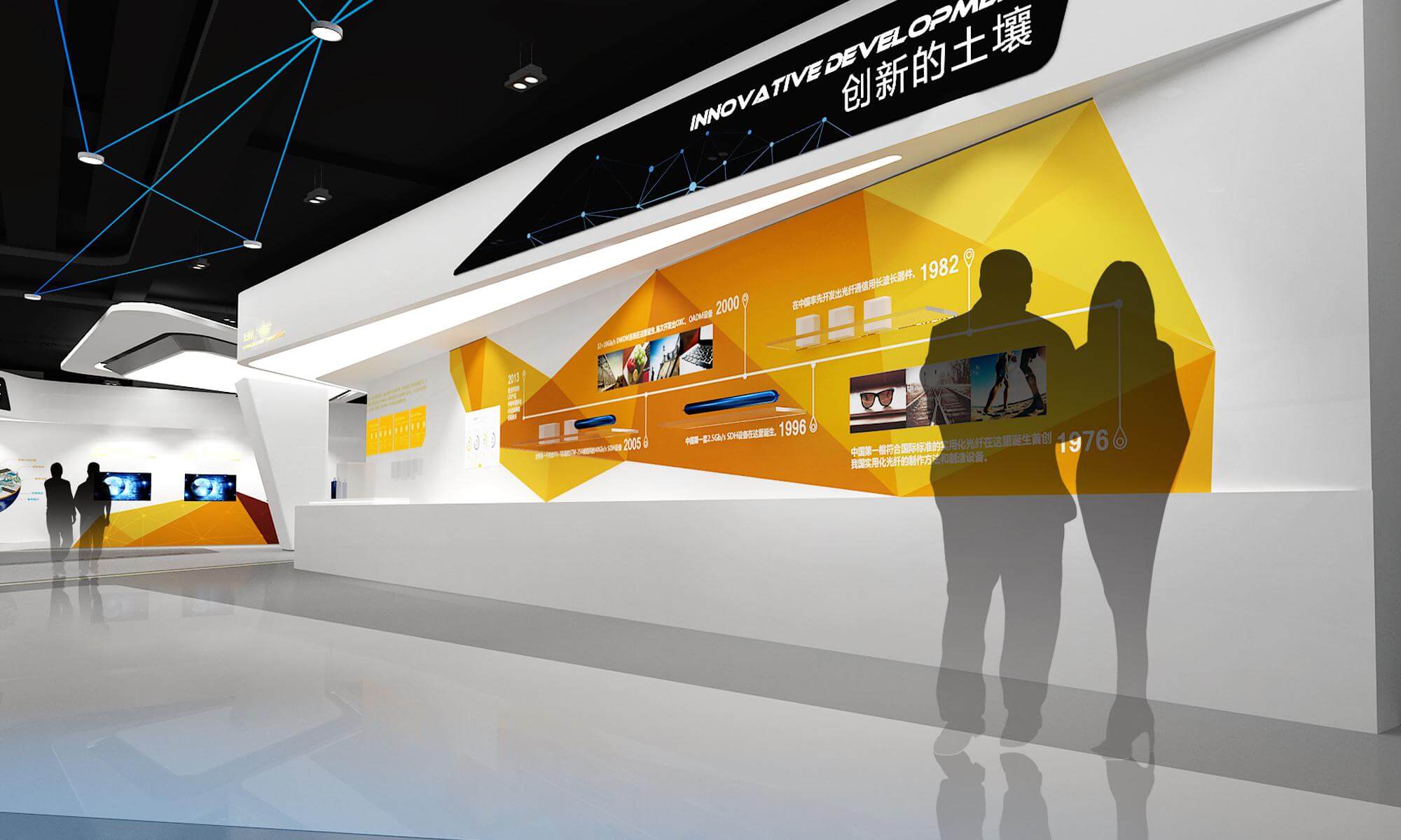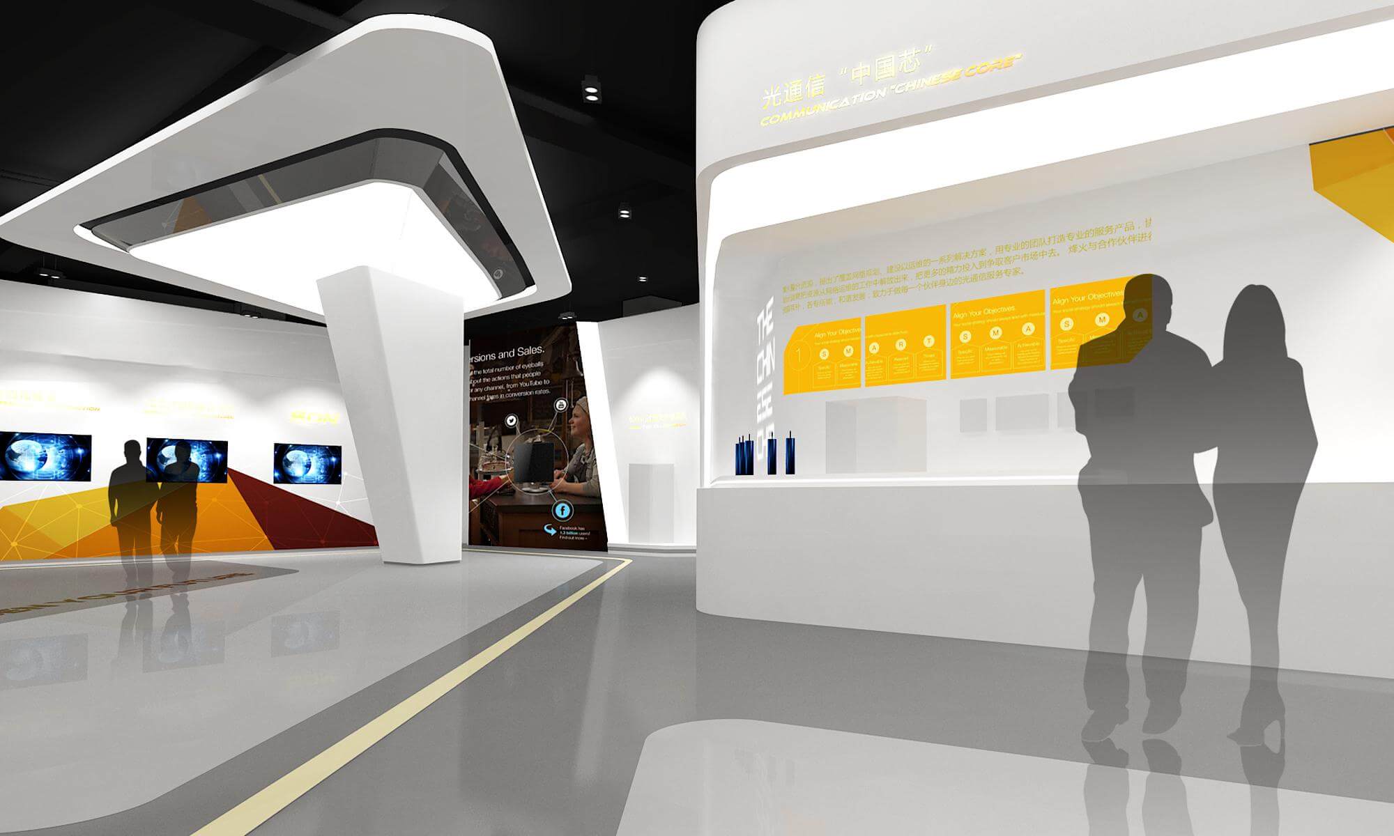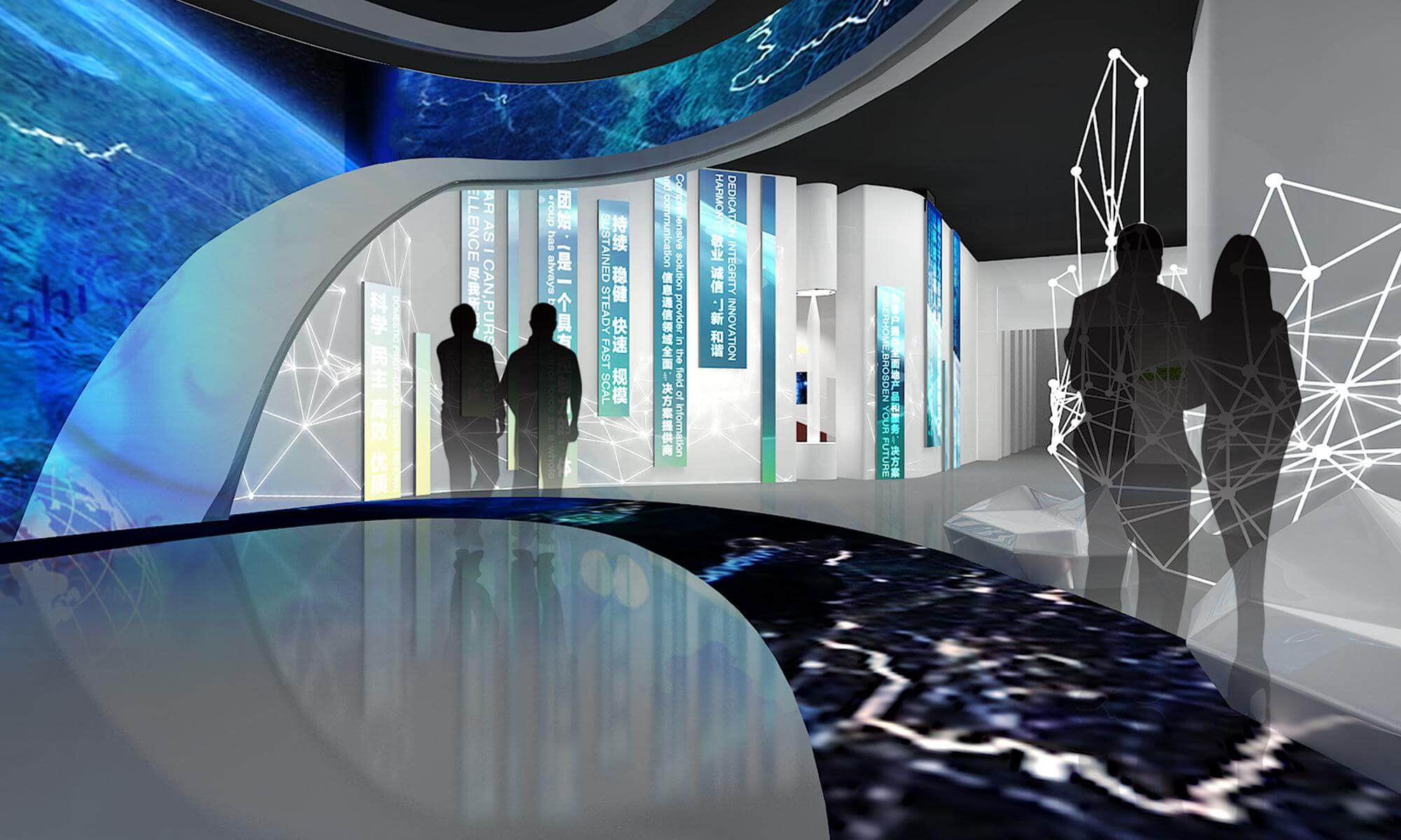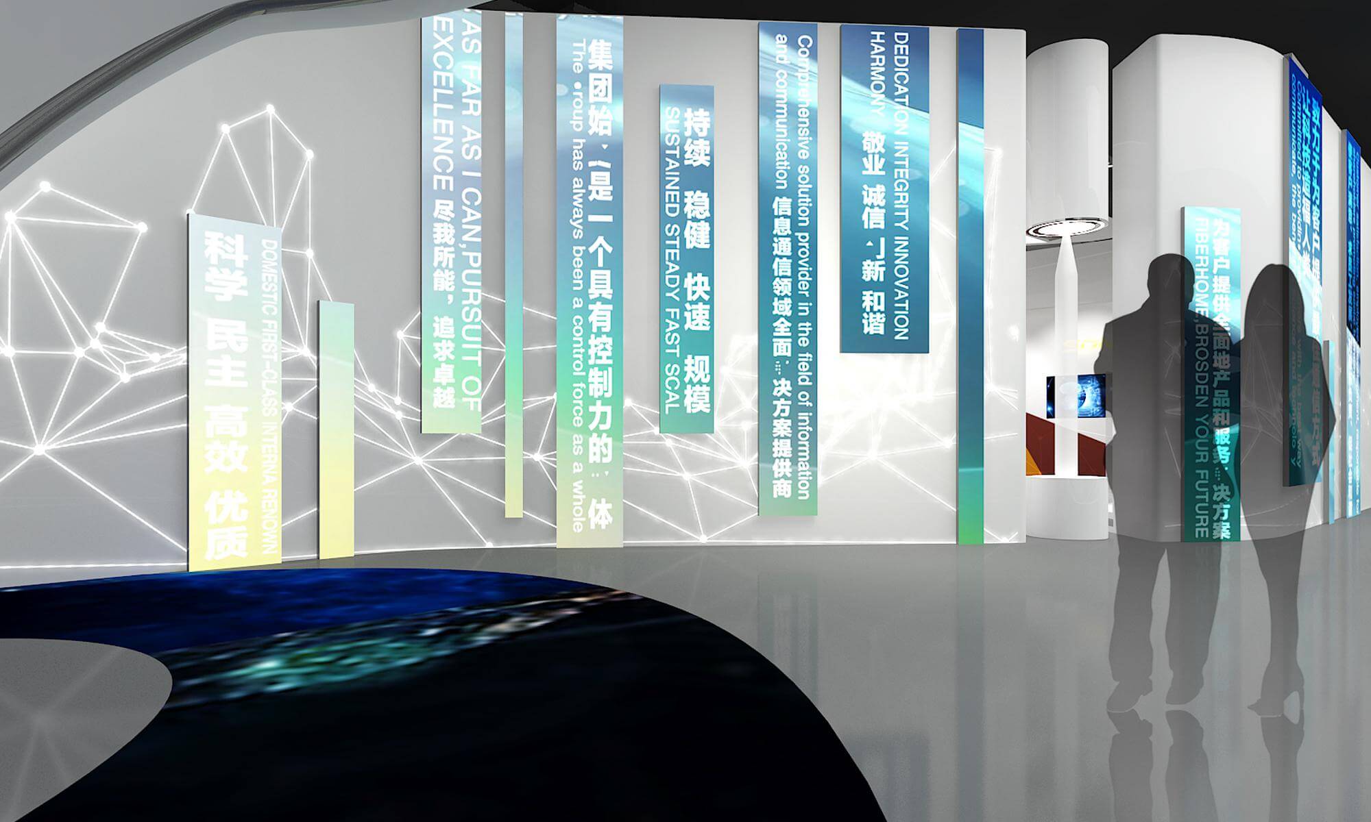 企業(yè)展廳定位于形象展示、行業(yè)交流及旅游觀光需要,通過圖片、圖表、文字、展板、模型、藝術(shù)景墻和多媒體聲光電等多種表現(xiàn)手法,集中展現(xiàn)武漢烽火科技集團(tuán)的研發(fā)設(shè)計、技術(shù)應(yīng)用、發(fā)展規(guī)劃的創(chuàng)新成果。企業(yè)館將充實(shí)和豐富武漢烽火科技通信領(lǐng)域的一體化開發(fā)設(shè)計能力和為客戶提供產(chǎn)品和服務(wù)的解決方案,提高企業(yè)在通信行業(yè)的實(shí)力形象。