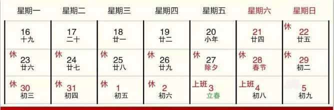 假期結(jié)束日期:2017年2月2日 (農(nóng)歷 正月初六)