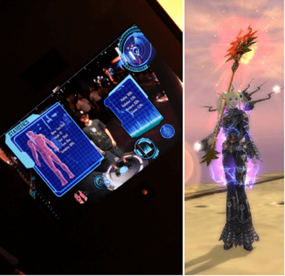 在虛擬的世界里,玩家獲取優(yōu)良裝備之后都是自己 的游戲角色裝備上。如果在展臺玩家可以通過 互動設(shè)備自己“穿上”游戲世界中獲得的裝備可能比 拿到裝備時(shí)的心情更激動。 |