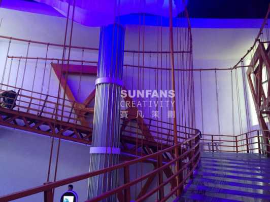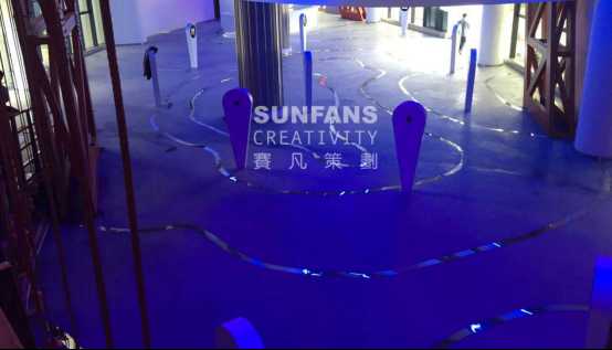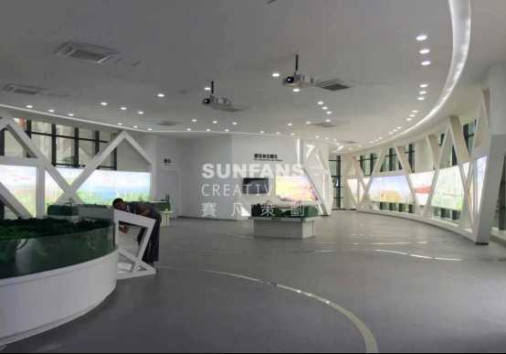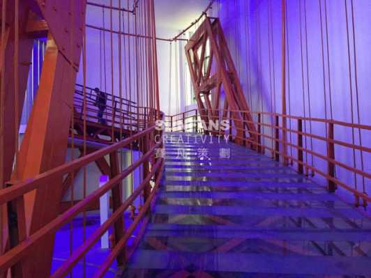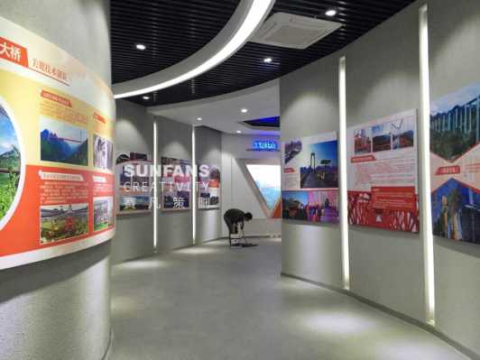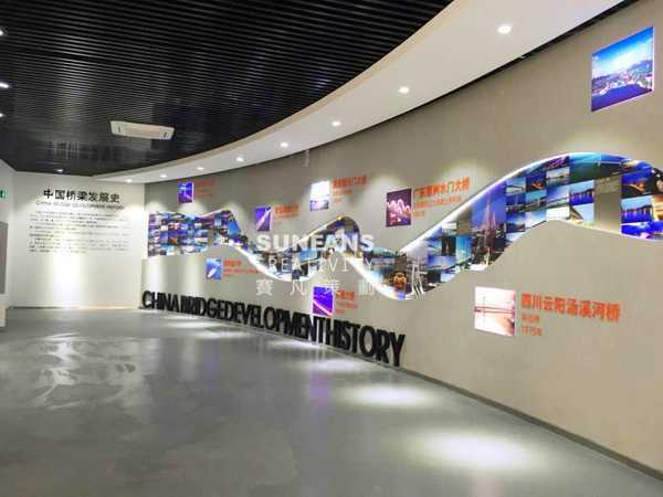 壩陵河大橋為了展現(xiàn)壩陵河大橋地理上建造的難度,將海拔線,坐標點按比例放于宣教館內(nèi)。