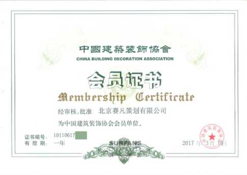 新鮮出爐!北京賽凡策劃成為中國建筑裝飾協(xié)會會員。