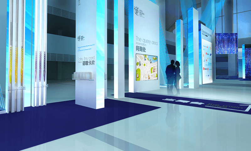 本次展會的整體空間創(chuàng)意,從貴州的地理元素中提取“自然生態(tài)”作為文化符號,并將網(wǎng)絡世界數(shù)據(jù)模塊與自然界叢林符號進行藝術(shù)化嫁接,使熱帶雨林的自然景觀和人文內(nèi)涵自然融合,演繹出大數(shù)據(jù)模擬從林生態(tài)系統(tǒng),形成本次大數(shù)據(jù)博覽會整體布局的創(chuàng)意造型,營造和渲染“爽爽貴陽”從“生態(tài)貴陽”進入“大數(shù)據(jù)貴陽”,進而邁向“貴陽云世界”的綠色發(fā)展之路。