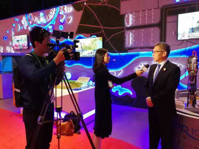 中國(guó)廣核集團(tuán)董事長(zhǎng)賀禹作為中國(guó)館代表企業(yè)接受了中央電視臺(tái)的采訪。