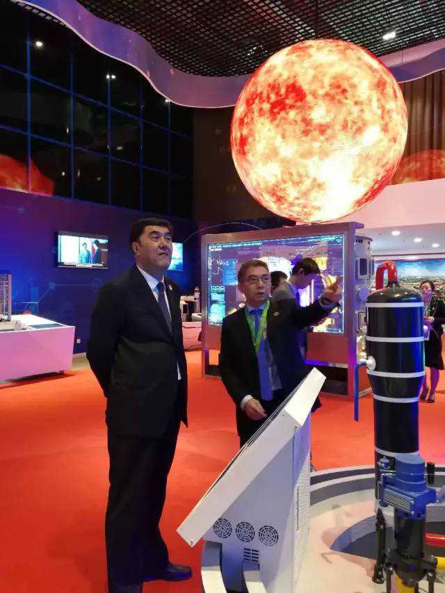 中共中央總書(shū)記、國(guó)家主席、中央軍委主席習(xí)近平于2017年6月8日在哈薩克斯坦總統(tǒng)納扎爾巴耶夫的陪同下巡視了2017阿斯塔納世博會(huì)中國(guó)館。